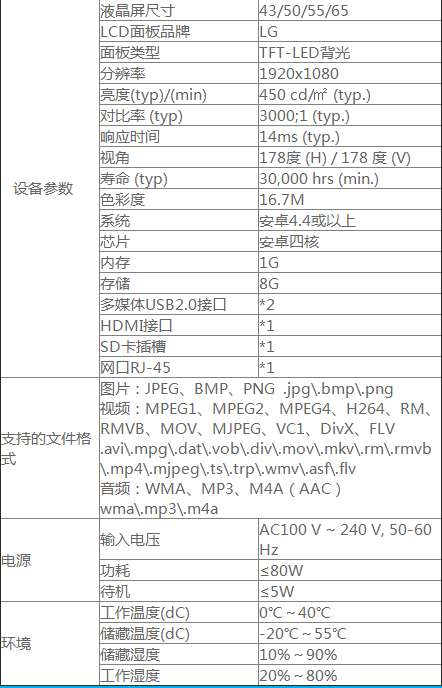 廣告機(jī)產(chǎn)品參數(shù):